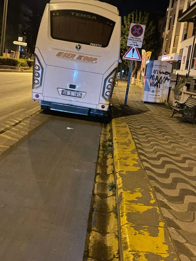 Görüntülerde net şekilde görüldüğü üzere, TEMSA marka servis aracı, bisiklet yolu üzerine park ederek hem trafik güvenliğini tehlikeye atıyor hem de bisikletlilerin geçişini engelliyor. O bölgede yer alan “Park etmek yasaktır” levhasına rağmen yapılan bu kural ihlali, şehirdeki denetim yetersizliğini bir kez daha gündeme taşıdı.