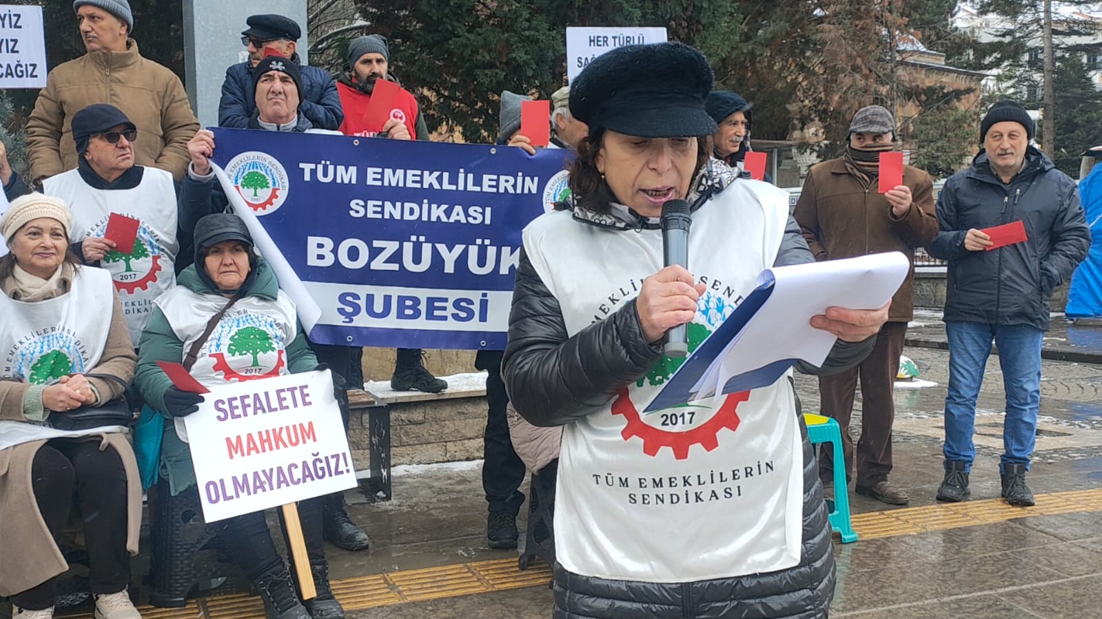 Eylemin sonunda emekliler, iktidara yönelik tepkilerini “kırmızı kart” metaforuyla dile getirdi. Açıklamada, bu politikaların seçimlerde mutlaka karşılık bulacağı vurgulandı.